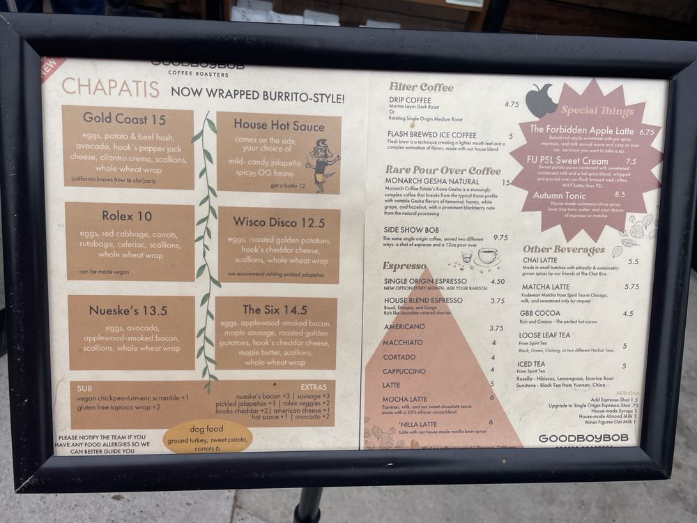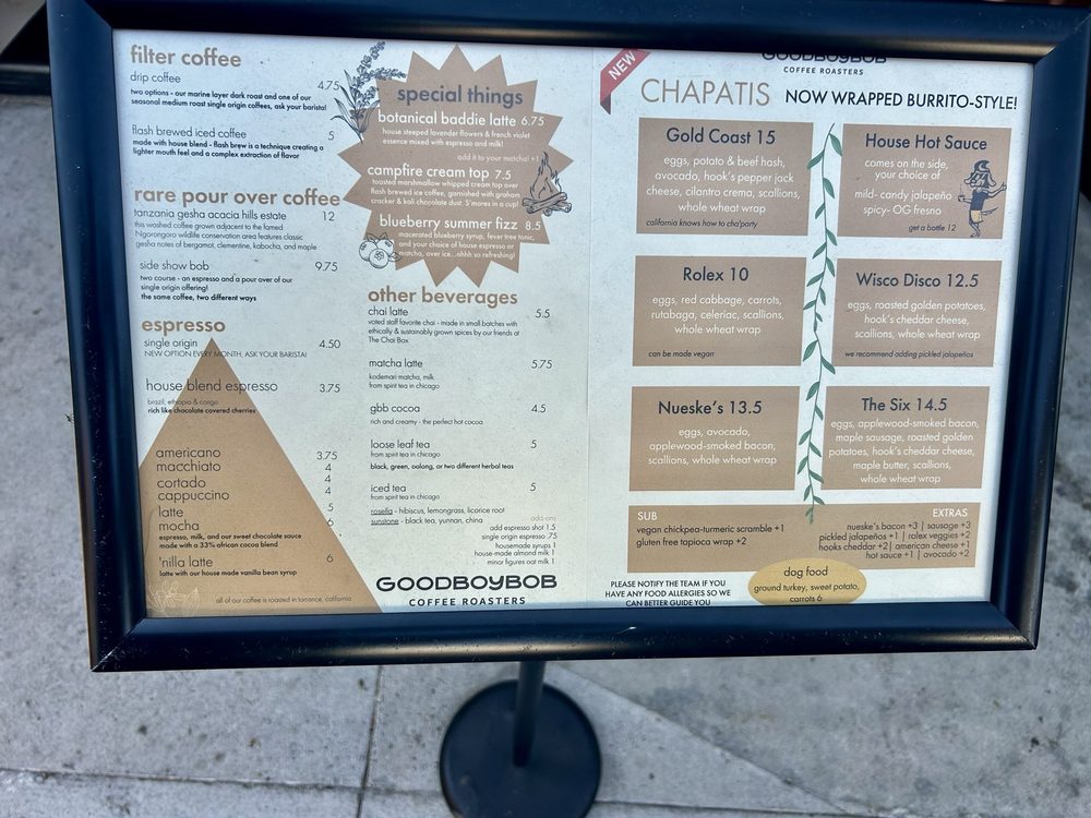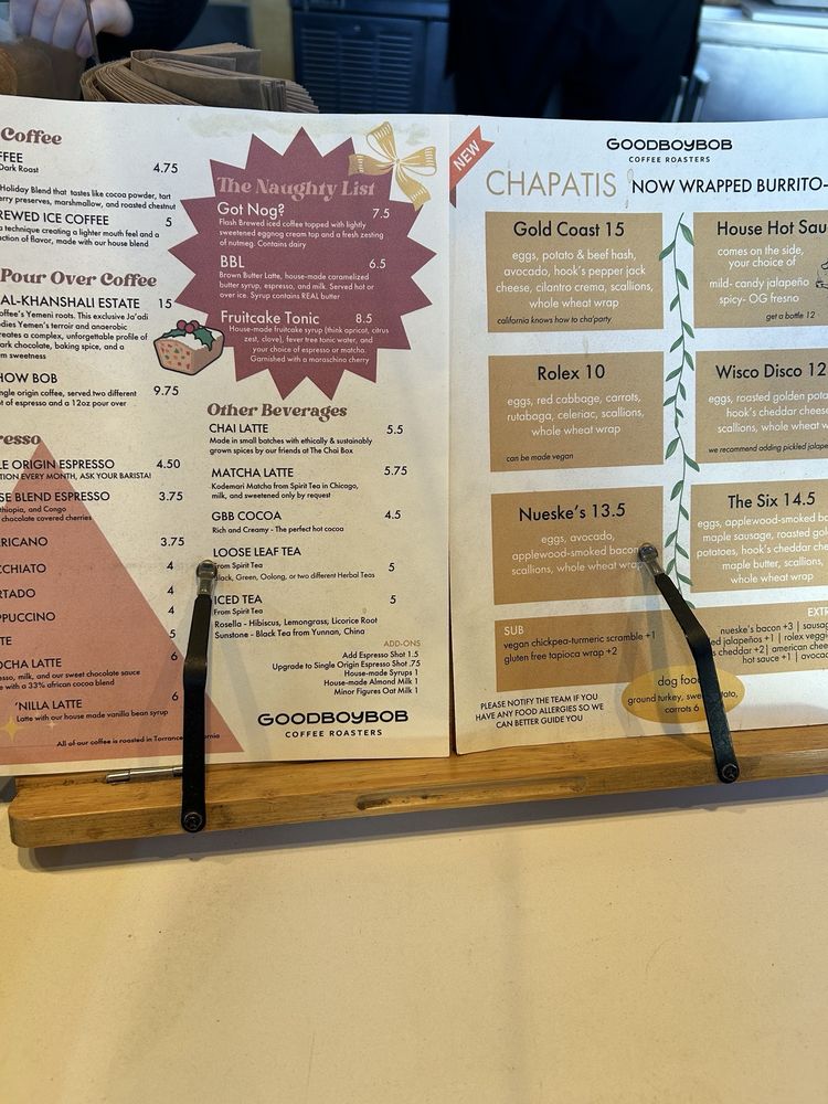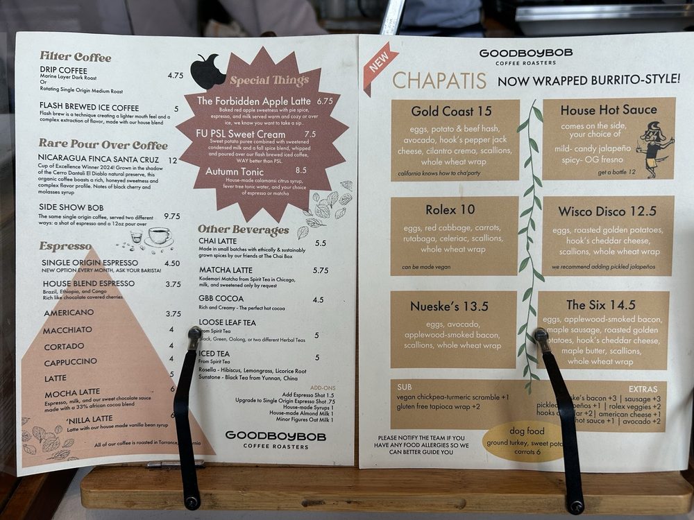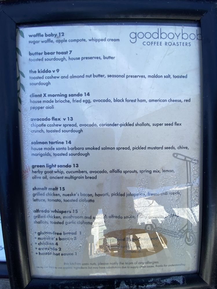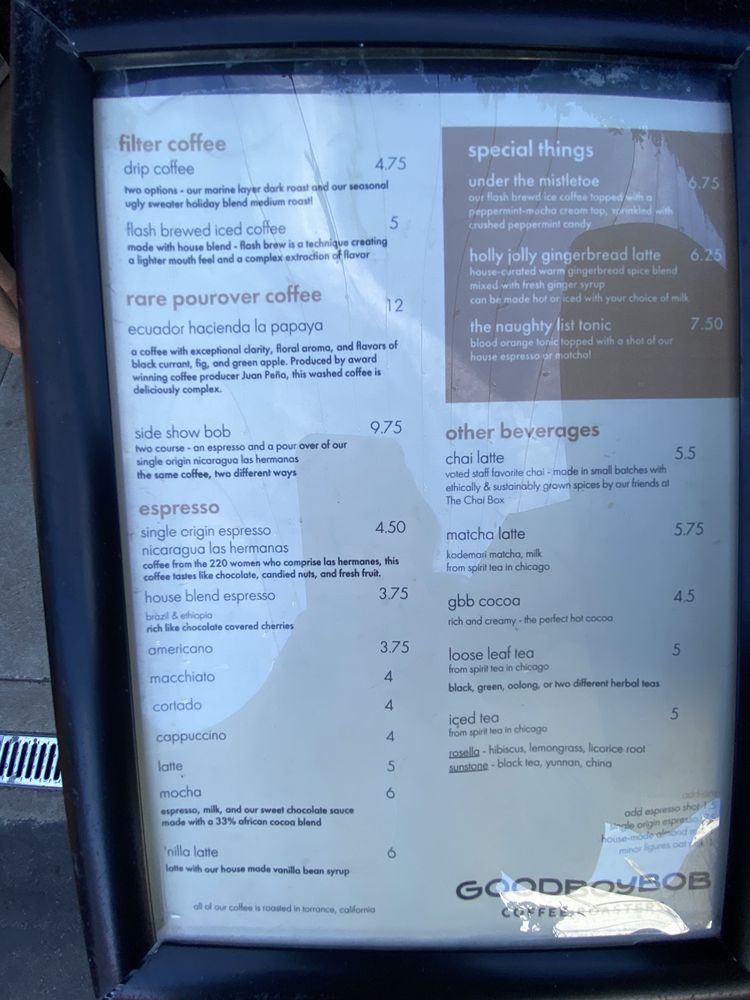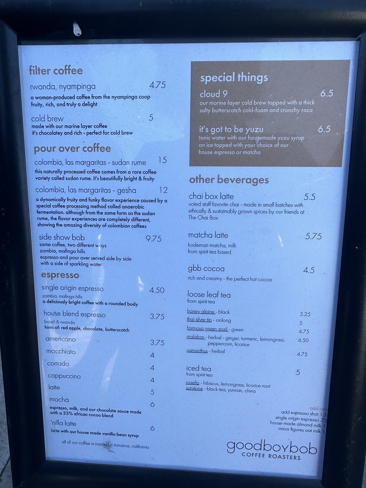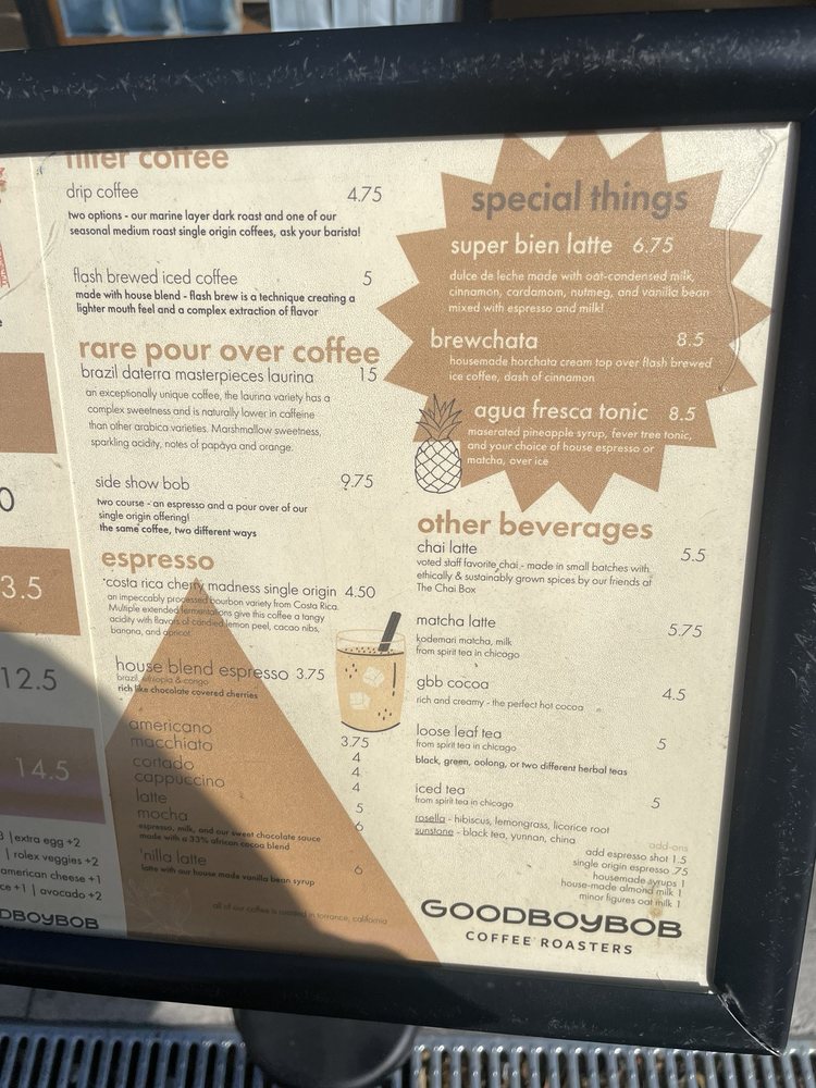 Goodboybob Coffee Roasters Menu