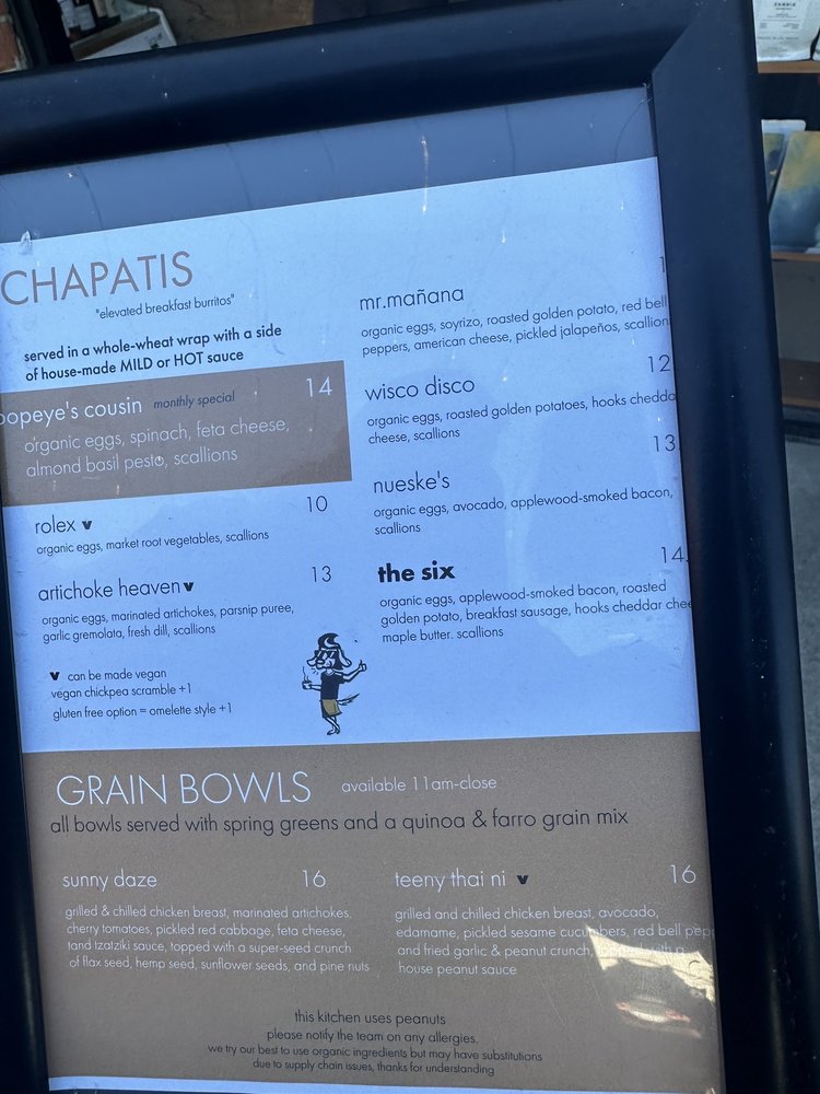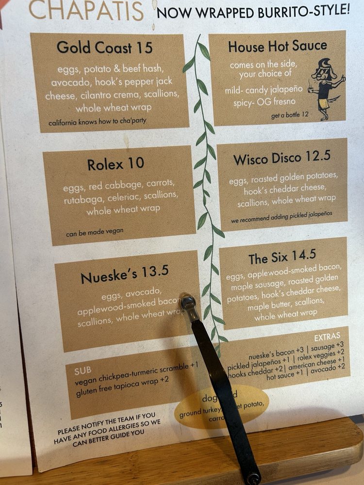 eggs, roasted golden potatoes, hook's cheddar cheese, scallions, whole wheat wrap we recommend adding pickled jalapeños